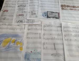 ゆーり先生の「作曲をしてみよう!」 2025.04.04 Uncategorized 季節、生き物、時間など 自由にテーマを決めて そのイメージに合った曲を 即興で作っていきます! 楽譜に書いて イメージの絵を描いて 仕上げました! 素敵な曲が たくさん生まれました✨ クッキング「いちごカスタードパイ」 前の記事 マンダラ塗り絵❣️ 次の記事