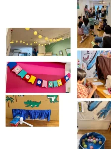 ワニワニパニック、「未来をのぞこう」占いの館、ヨーヨー釣り、ボール投げ的当て🎯、ミャクミャク腕輪作り、オペラボ劇団人形劇…etc