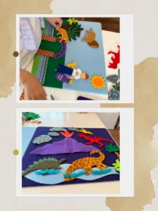 フェルトアート✨ 2025.07.09 Uncategorized フェルトのボードに 同じく色んな形のフェルトを置いて… 動物園や、恐竜時代など 自分の世界を作って楽しんでいました✨ 紙のお人形と 工作でお家作り 前の記事 オリジナル牛乳パックのカゴ作り! 次の記事