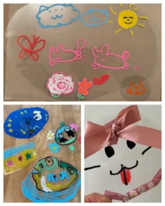 今日のアートは 透明シートお絵描き! 2025.02.17 Uncategorized 透明のプラスチックに ポスターカラーでお絵描きすると カラフルで 素敵な作品になりました! パンチで穴を開けたところにリボンを🎀つけたら めちゃめちゃ可愛くなりました〜❤️ 親御さまより寄付をいただきました✨ 前の記事 今日のアートは粘土作品! 次の記事