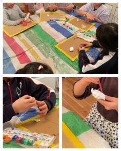 今日のアートは粘土作品! 2025.02.17 Uncategorized 粘土版の上でコネコネ いろんなものを作ってみました✨ 型抜きをしたり 真っ白い粘土に 色をつけたりするのも楽しい! 今日のアートは 透明シートお絵描き! 前の記事 バレンタインcooking! 次の記事