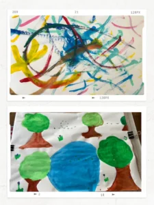 児童水彩画作品紹介☆ 2025.05.15 Uncategorized Eさんの とても豊かでのびのびとした表現力と、綺麗な色使いは 目を惹きます! Yさんの絵のタイトル「風のうた」も とても素敵なネーミングです❤️ どちらもフレームに入れて飾らせていただきます✨ 画家ナギ先生アート「猫とネズミ」 前の記事 美香先生による「ピアニカを上達させよう〜🎵」イベント! 次の記事